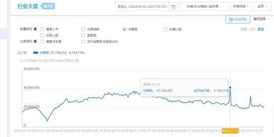 在生意参谋市场行情里面可以看到大盘的数据,我们可以根据16年连衣裙的趋势变化来预测17年的情况,然后有了这些历史数据的时候你心里就会清楚的知道在什么开始准备切入,什么时候开始发力推广,什么时候开始清仓处理。