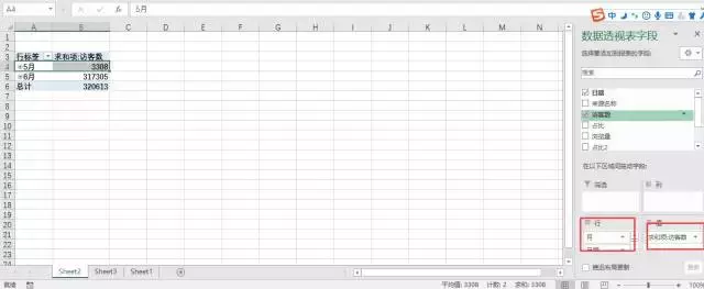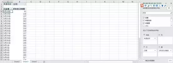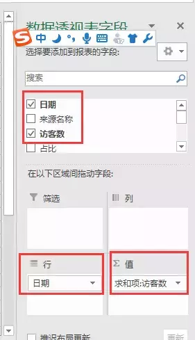 把日期拖入到行,把访客拖入到值,这个时候就比刚刚要清晰明了了一些,。