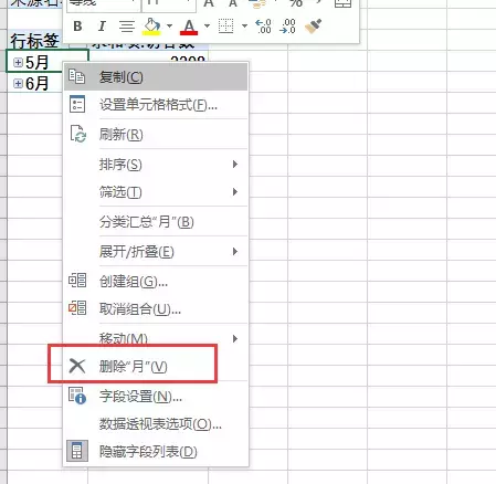 当然,如果出现我上面这个表格一样的话也不太好,因为我们需要看的是每一天,不需要他汇总每一个月,这个时候你点击一下五月,然后右键,点击删除月