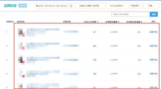 当然,如果你要是分析的竞争对手是天猫的话,那么就更简单了,直接查看品牌粒度就可以了