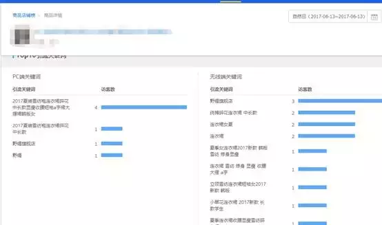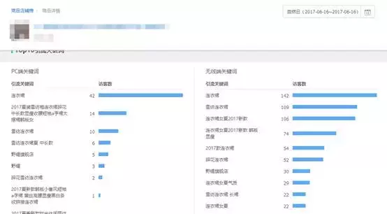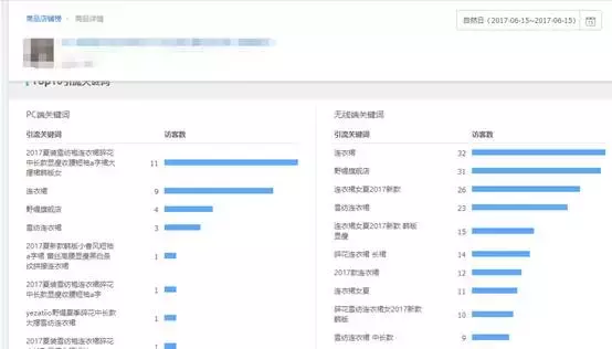15号的时候明显比前一天多了很多,而且最多的关键词流量是连衣裙这个关键词。