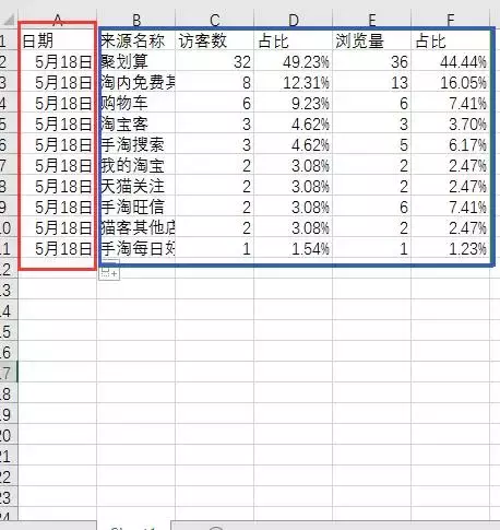 比如这个款的宝贝,我们可以看出5月18号的时候他的流量基本都很少,所以我们之后的数据都复制出来放入到excel表格。