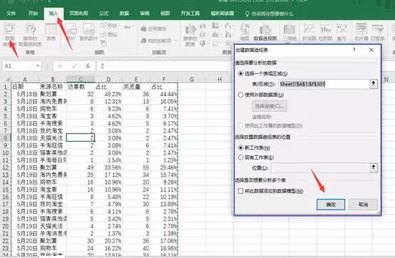 用鼠标在数据区域中的任何一个地方点击一下,然后点击插入—数据透视表,点击确定
